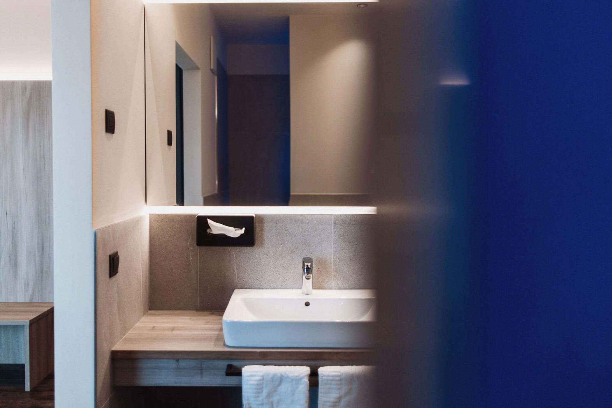 Bad mit Dusche, WC & Bidet, Föhn, Waschbecken, Kosmetikspiegel, beheizter Handtuchhalter, Kosmetikset